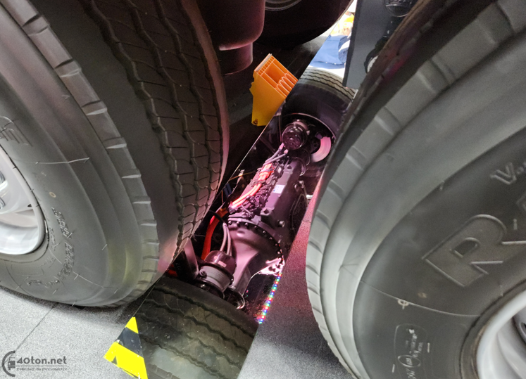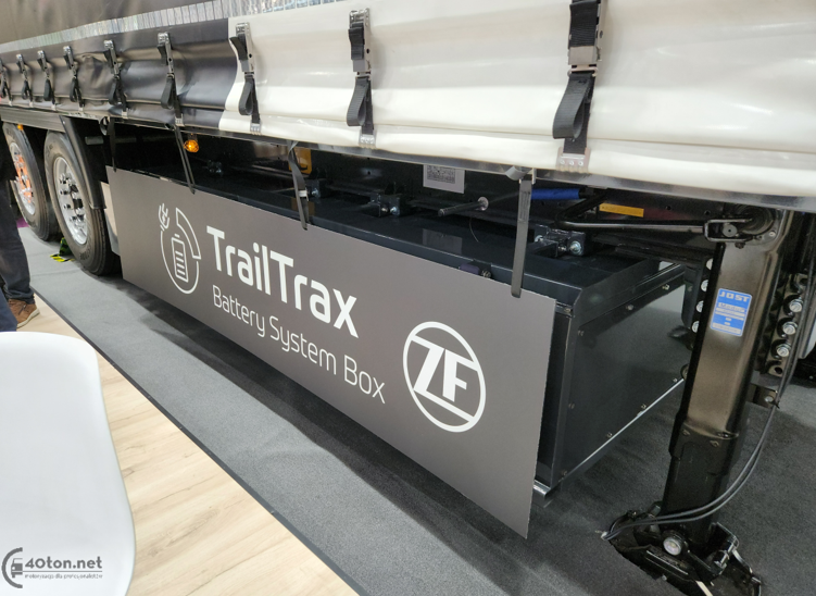 Emlékeztetve arra, hogy milyen technológiákról beszélünk itt, az alábbiakban néhány fotó látható a hannoveri IAA Transportation 2024-ről. A Kässbohrer bemutatta a fent említett ponyvás pótkocsit a ZF TrailTrax elektromos hajtótengellyel. Ez a hajtás 286 LE maximális teljesítményt fejleszt, és egy akár 300 kWh kapacitású akkumulátorral kombinálják, amelyet a padló alá függesztenek, a raklapdoboz helyett. Mindent úgy programoztak, hogy a belső égésű vontatók üzemanyag-fogyasztása akár 16 százalékkal is csökkenthető legyen.