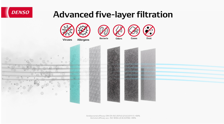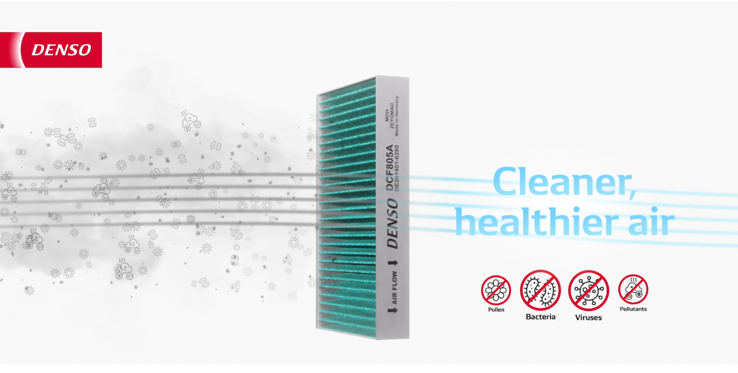 Örömmel mutatjuk be a DENSO prémium ClearAir+ utastéri levegőszűrő bevezetését, amely antivirális és antibakteriális technológiával járul hozzá az egészség védelméhez és a klímarendszer jobb teljesítményéhez.