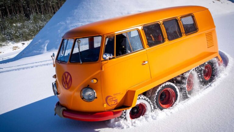 Jöhet hó vagy sár, a 33 lóerős Volkswagen T1 Half-Track Fox mindenen átgázol Hatvan évvel ezelőtt még négy kerékkel gurult át a gyárkapun, majd egy